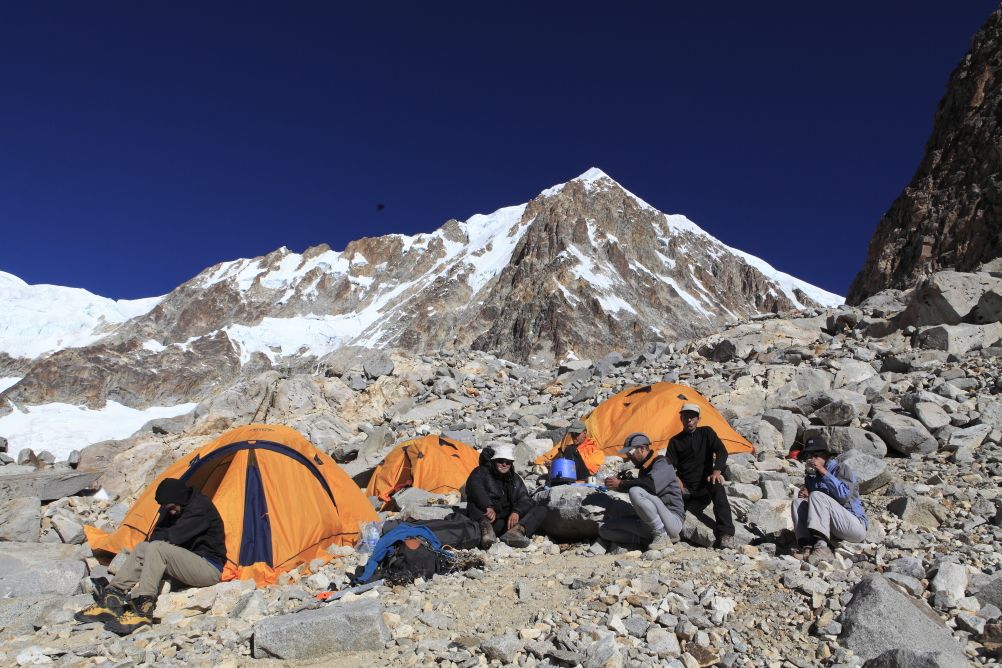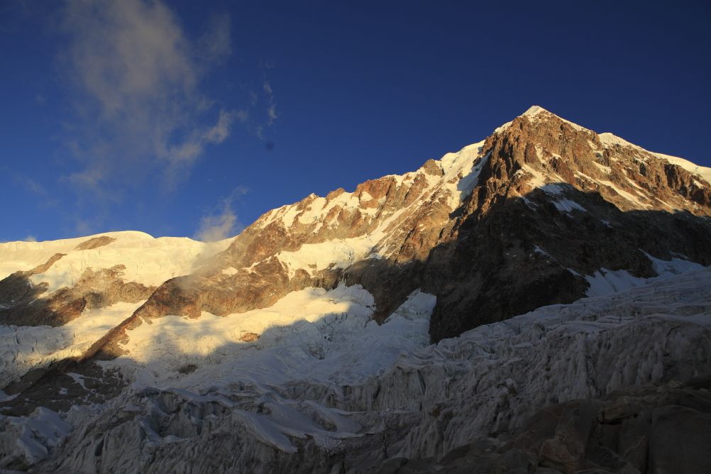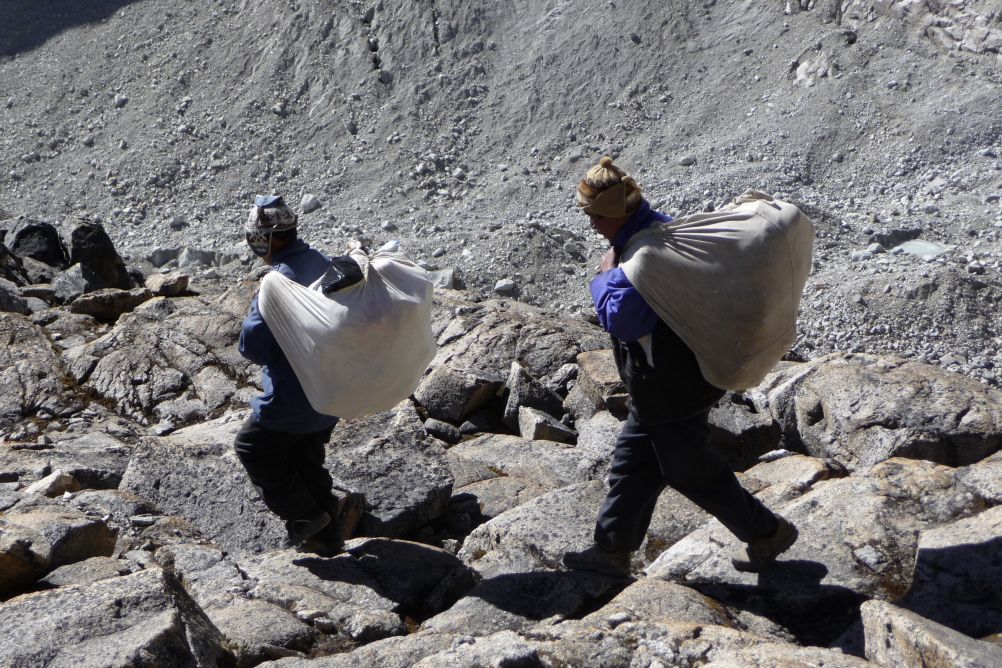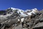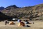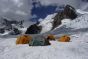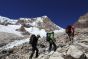 Nous remontons à travers des dalles rocheuses pour rejoindre la moraine du glacier à environ 4900 m. Puis c'est sur la moraine que le chemin zigzague, et nous installerons le camp légèrement en contre bas d'une falaise longeant la moraine. Notre cuisinier nous accompagnera pour nous préparer un excellent diner. Repas froid à midi. Campement.