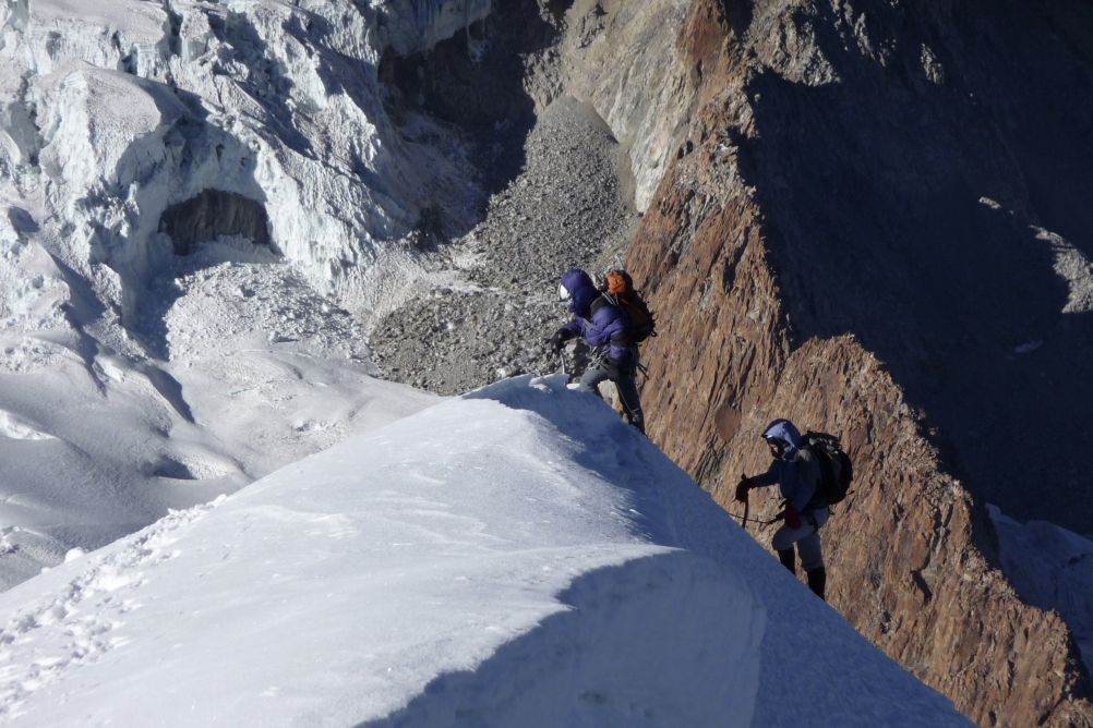 L'ascension de L'Illampu nécessite une bonne expérience alpine, dans des courses de niveau PD à AD. Il y a une pente de 200 m à 50 ° en glace, puis une belle arête aérienne en neige. L'Ancohuma n'est pas raide, et nous servira comme sommet d'acclimatation et de mise en jambe. Nous vous demanderons une liste de course.