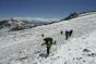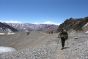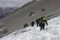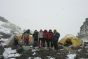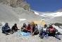 Montée au Camp 1 (4900 m) avec tout le matériel et installation du campement. L'eau encore présente à cette altitude nous permettra une bonne hydratation, facteur important pour l''acclimatation de l''organisme. C’est également notre première nuit en altitude et un bon test pour la suite.