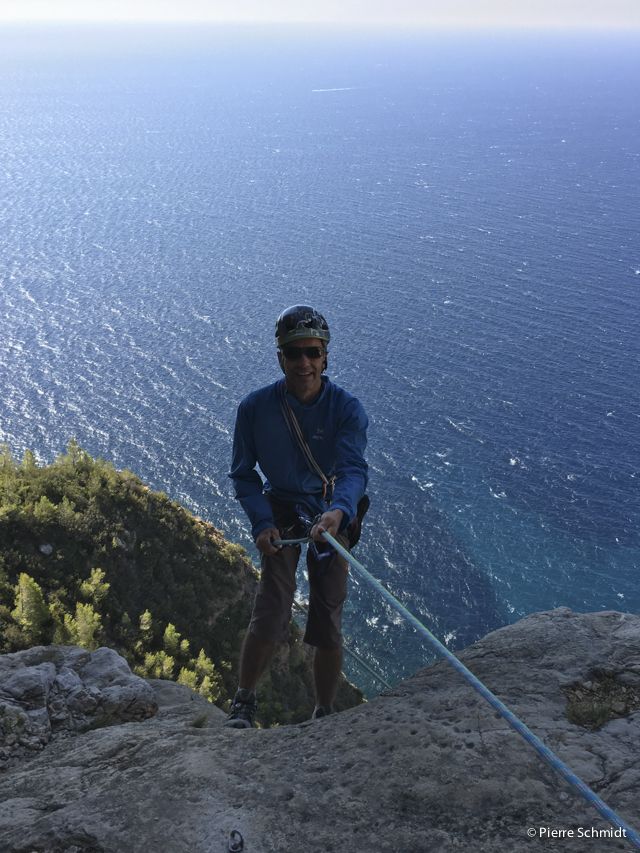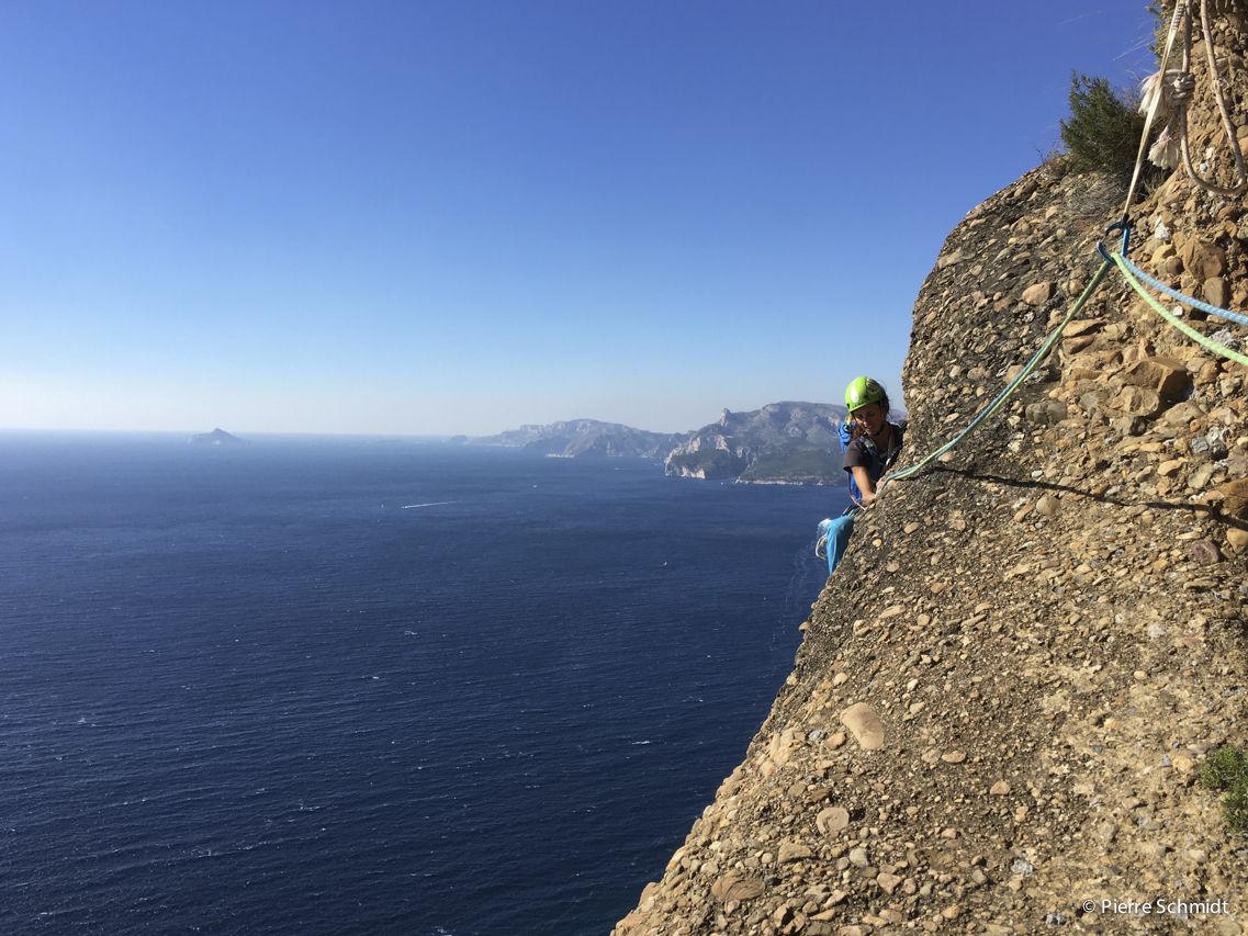 Ce stage escalade au Cap Canaille est idéal pour aborder l'escalade en grandes parois, avec en prime une ambiance fantastique combinant la mer et l'escalade. Les voies sont relativement bien équipées, et cela vous permettra de revoir tous les aspects de l'escalade mais aussi des manoeuvres de cordes en grandes voies.
