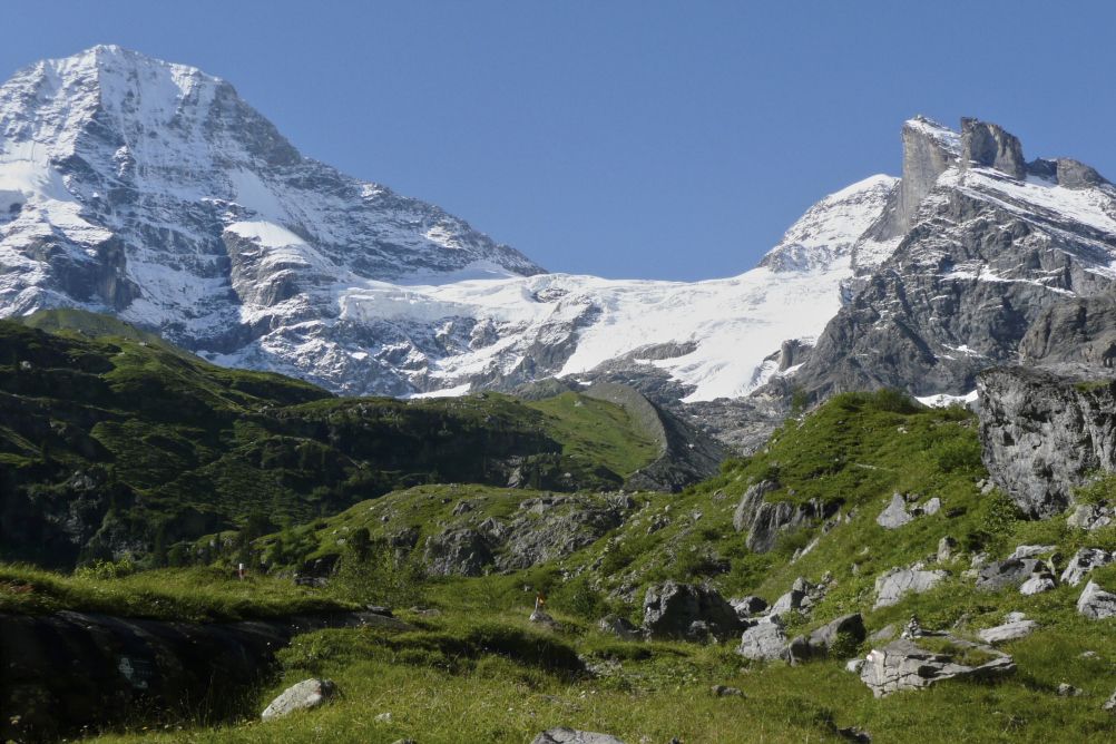 C'est l'une des plus belles étapes de cette semaine, avec le contraste saisissant des alpages et des faces nord glaciaires des hauts sommets comme la Jungfrau, le Breithorn, et l'Abeni Fluh que nous avons gravi la veille.
