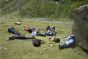 - Pique-niques : nous vous fournissons au départ de quoi manger le midi uniquement. (Jour type : 1 tranche de rôti de porc + pain + tomme + petit cake + mars + chocolat). Prenez des vivres de course à mettre dans vos poches (fruits secs, pâte d'amande...). Vous n'avez pas dans les sacs : d'orange, de crème dessert, de riz au lait... c'est lourd ; d'oeufs, de bananes... ça s'écrase ; de charcuterie au-delà du J3... ça ne se conserve pas.