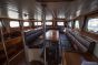 Le carré est spacieux, situé au niveau du pont ce qui permet d'admirer le paysage tout en naviguant, avec une grande table pour 10 personnes.
