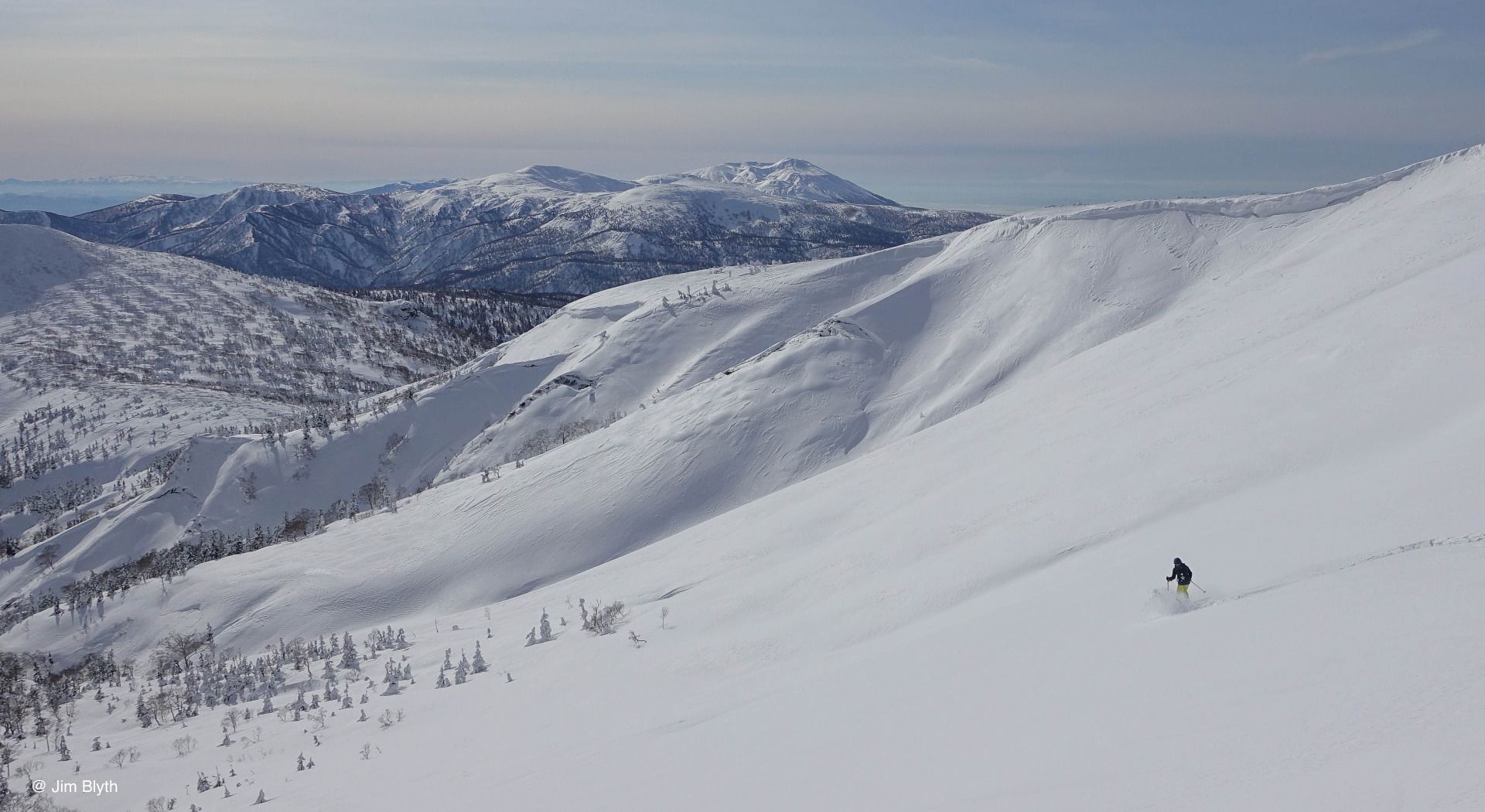 Nous partons légèrement plus au nord pour la petite station de Kiroro situé non loin de Sapporo et peu fréquentée mais offrant une vue superbe sur la mer depuis le haut des montagnes. Ascension de l'un des deux sommets depuis la station.