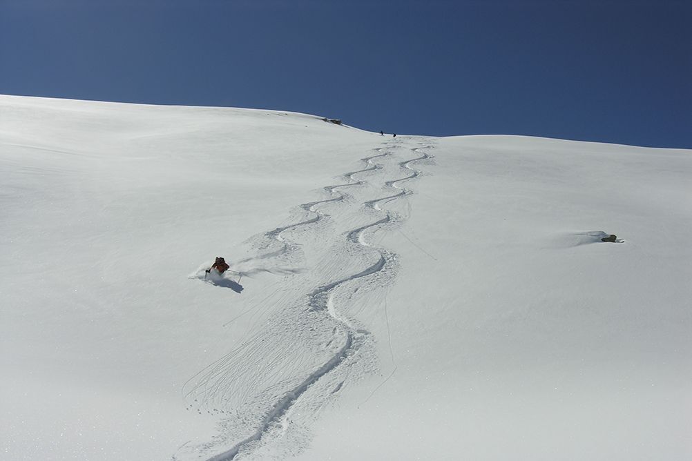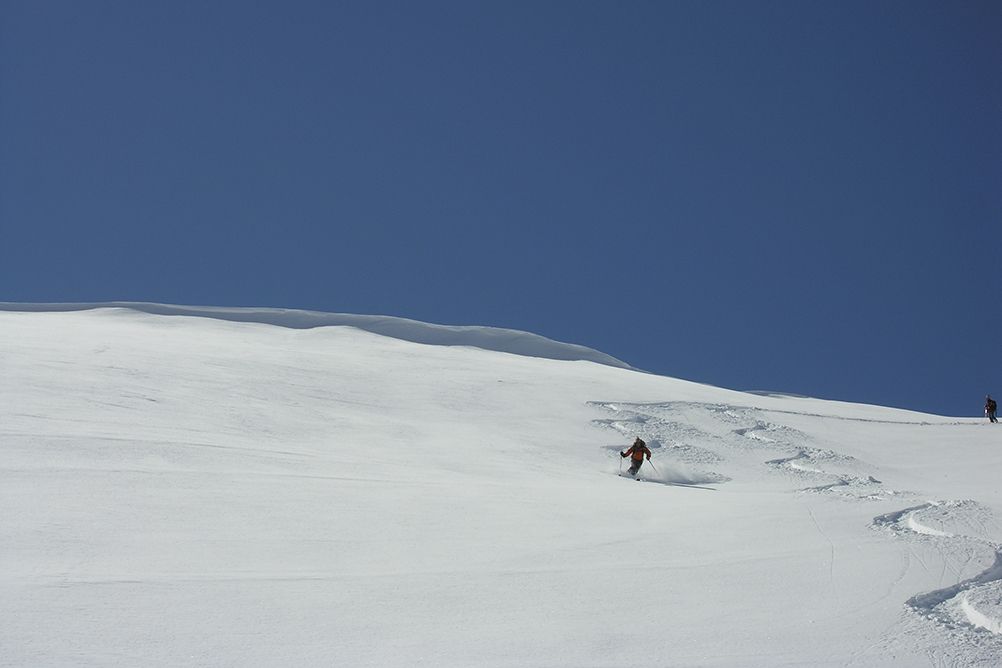 Pentes de neige à 35° maximum, vous devez être à l'aise en toute neige. Néanmoins, cette formule en étoile permettra d'adapter le niveau des sorties au niveau technique de l'ensemble du groupe.
