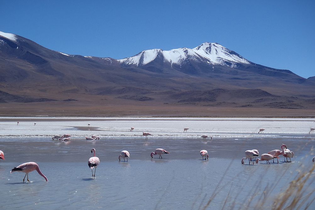 Entre le Chili et la Bolivie, l'Altiplano étire ses immensités désertiques, englobant des salars uniques au monde, des lagunes multicolores et des superbes volcans dont le Parinacota et le Sajama. Depuis l'île du Soleil, berceau de la civilisation inca posé au milieu du lac Titicaca, nous partirons à la découverte des plus beaux sites qui ont fait la réputation de la Bolivie. C'est d'abord la cordillère royale et ses sommets enneigés ; puis Oruro et son carnaval reconnu par l'UNESCO comme patrimoine culturel de l'humanité (!) ; enfin Uyuni et son incroyable salar, le plus grand du monde ! Après un passage à la Laguna Verde, et l'ascension de l'Uturuncu comme mise en jambes, nous partirons au pied de nos objectifs : le Parinacota et son compère le Sajama. Andinisme et tourisme : ce voyage combine tous les plaisirs d'un voyage haut en couleur.