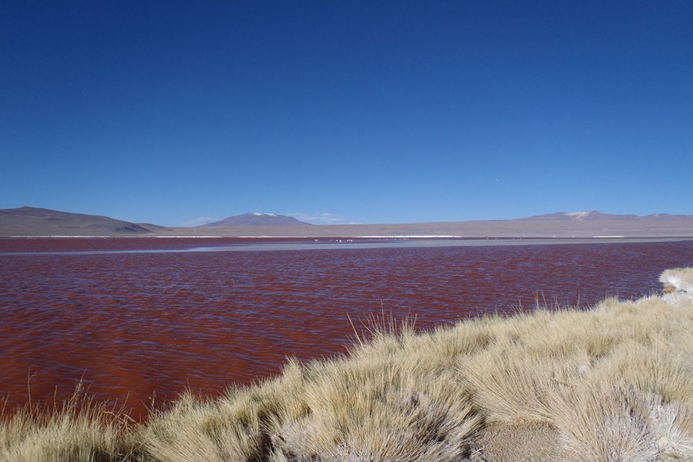 Arrivée à la surprenante Laguna Colorada.