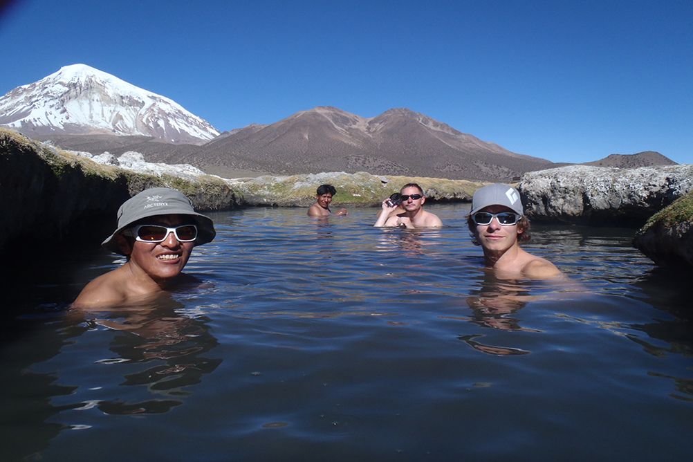 Descente jusqu’en bas et bain bien mérité aux eaux thermales non loin du village de Tomarapi (3 à 4H jusqu’au camp 1, et 2 à 3H jusqu’à Quenuales).